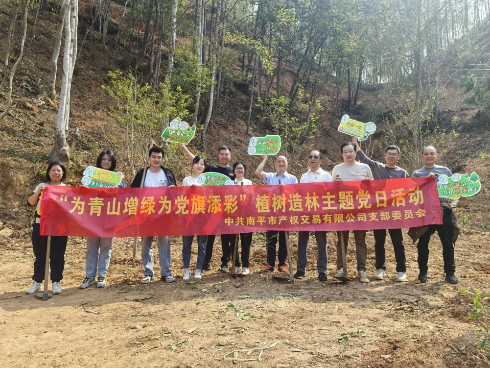 春风拂面,万物复苏。为深入贯彻落实习近平生态文明思想,践行“绿水青山就是金山银山”理念,进一步推动党建与业务深度融合。近日,产权公司党支部组织前往麻沙镇长坪村开展“为青山增绿 为党旗添彩”植树造林主题党日活动。此次活动结合南平市“一元碳汇”项目,旨在通过全民义务植树的场景应用,为美丽南平增添一抹新绿,以实际行动为党旗添彩。