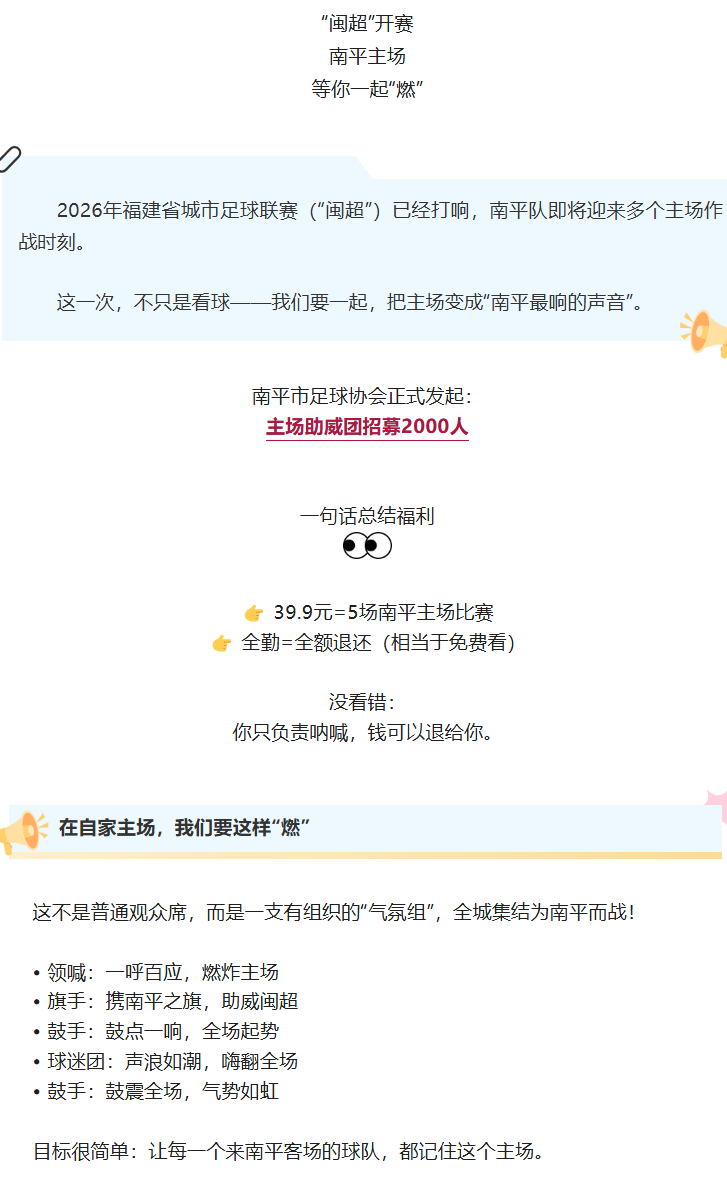 39.9元看5场,还能免单?“闽超”南平主场专属福利来了